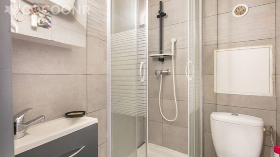 - Une salle de bain avec douche et WC