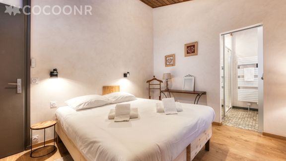 - Chambres 1 : suite parentale avec un lit queen-size (160x200) et une salle d'eau avec douche et double vasque