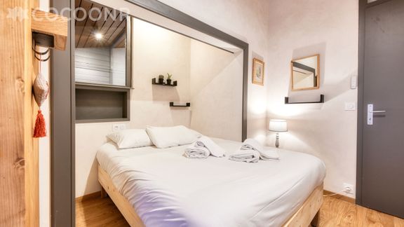 - Chambre 2 : style alcôve avec un lit double (140x200)