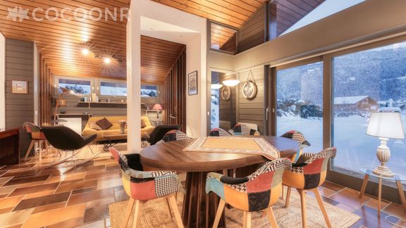 Nous vous proposons à la location, sur la commune de Saint-Gervais-les-Bains, ce charmant chalet avec vue magnifique sur le Mont Blanc et le refuge de Miage plein sud d’une superficie de 100 m² et pouvant accueillir jusqu’à 8 voyageurs. Il est composé d’une jolie pièce à vivre de 35 m², d'une cuisine équipée, de quatre belles chambres, deux salles d'eau (avec douche) et vous pourrez profiter d’un jardin d’environ 1 500 m². Wifi, draps et serviettes inclus, nous n’attendons plus que vous !