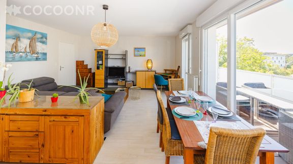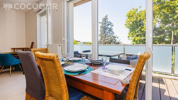 L'agence Cocoonr/Book&Pay vous propose à la location, à Saint-Jacques-de-la-Lande, ce charmant duplex d’une superficie de 92 m² et pouvant accueillir jusqu’à 6 voyageurs. Situé au 4e étage (avec ascenseur), il se compose d’une jolie pièce à vivre de 92 m², d'une cuisine ouverte équipée, de trois chambres, d'une salle de bain (avec baignoire) et d'une salle d'eau (avec douche). Wifi, draps et serviettes inclus, nous n’attendons plus que vous !