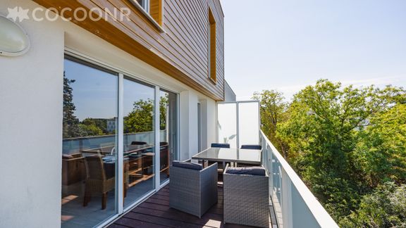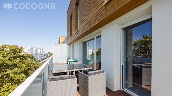 - Un balcon-terrasse de 14 m², exposé sud-ouest, avec mobilier pour profiter des beaux jours