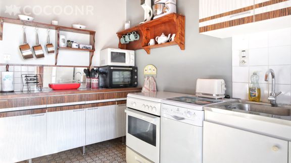 - Une cuisine équipée avec notamment : bouilloire électrique, four, four à micro-ondes, grille-pain, lave-vaisselle, plaques de cuisson...