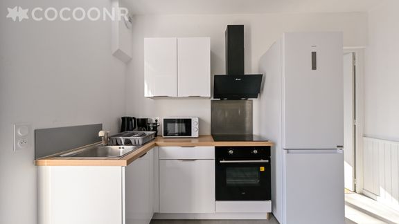 - Une cuisine entièrement équipée : préparez vos repas comme à la maison (four, micro-ondes, plaques, bouilloire, grille-pain, etc.)