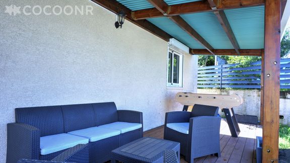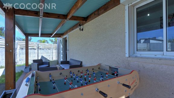 - Deux terrasses en bois de 25 m² : une côté jardin et l'autre à l'arrière de la maison avec mobilier pour profiter des beaux jours et baby foot
