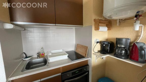 - kitchenette intégralement équipée : four, plaques de cuisson, bouilloire, grille-pain, cafetière à filtre et Tassimo, service à raclette et à fondue, réfrigérateur, vaisselle et couverts