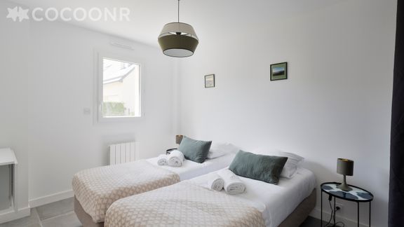 - Une chambre avec 2 lits simples 80 x 190 cm, pouvant être rapprochés pour faire un lit double (160×190)