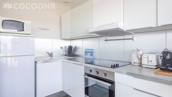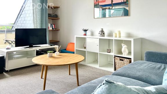 À seulement 150 m de la plage, l'appartement se compose d'une spacieuse et lumineuse pièce de vie avec cuisine américaine équipée s'ouvrant sur le salon-séjour avec canapé convertible et TV ; un balcon idéalement orienté pour profiter des journées ensoleillées ; une salle d'eau avec douche et toilettes séparées ; une chambre avec un vaste dressing et un lit King Size pouvant être séparé en deux lits simple. Place de Parking privée, linge de maison fourni, wifi.
