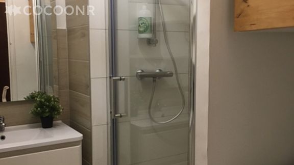 - Salle d'eau avec douche, sèche serviettes, lave-linge
