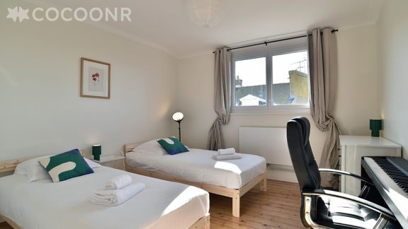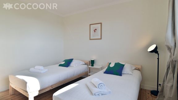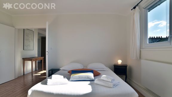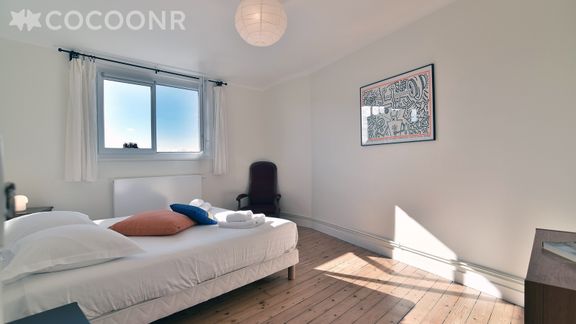 L'agence Cocoonr/Book&Pay vous propose à la location, à Saint Servan à Saint-Malo, ce charmant appartement, à 350 m de la plage, d’une superficie de 70 m² et pouvant accueillir jusqu’à 4 voyageurs. Situé au 4ᵉ et dernier étage (sans ascenseur), il se compose d’une pièce à vivre de 33 m², d'une cuisine équipée, de deux chambres, de deux salles de bain (avec douche et baignoire). L'appartement est traversant, sans vis-à-vis, et lumineux. Wifi (fibre optique), draps et serviettes inclus, nous n’attendons plus que vous !