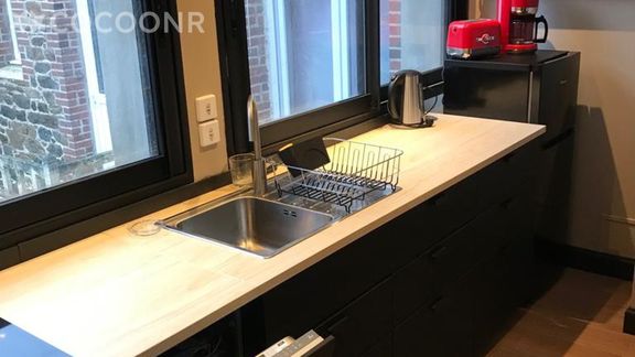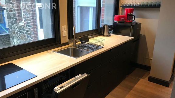 - Une cuisine équipée avec notamment : bouilloire électrique, grille-pain, plaques de cuisson, réfrigérateur, four à micro-ondes, four, cafetière...