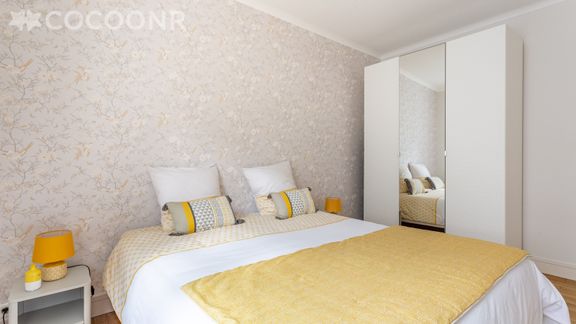 - Une chambre avec un lit king-size (180×200), modulable en deux lits simples sur demande et une grande armoire dressing.