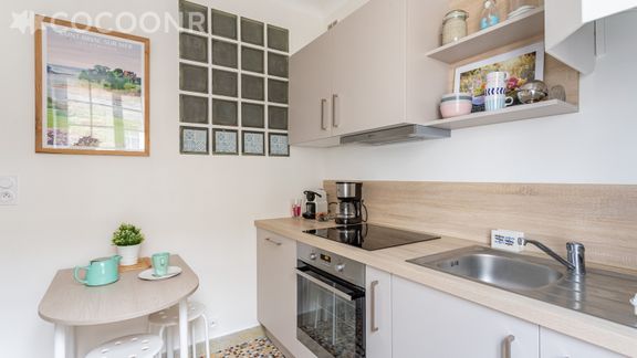 - Une cuisine équipée avec notamment : bouilloire électrique, four, four à micro-ondes, grille-pain, lave-vaisselle, plaques de cuisson, cafetière à dosettes Nespresso...