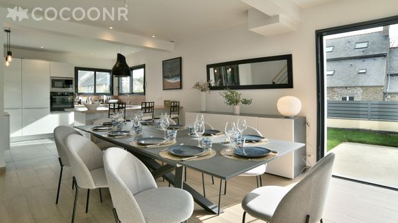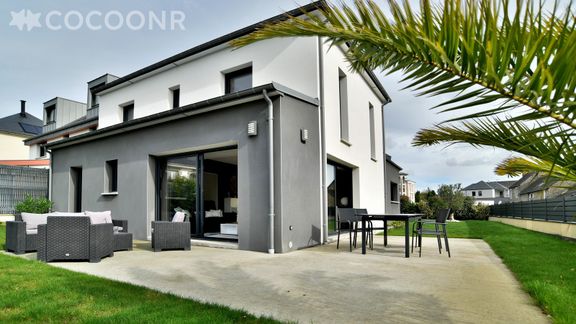 Nous vous proposons à la location, à Saint-Malo, cette charmante maison neuve, construite en 2020, à 400m de la plage, d’une superficie de 130 m² et pouvant accueillir jusqu’à 10 voyageurs. Elle est composée d’une jolie pièce à vivre de 50 m², d'une cuisine équipée, de quatre belles chambres, de deux salles de bain (avec douche et baignoire) et d’un jardin d’environ 250 m². Wifi (fibre optique), draps et serviettes inclus, nous n’attendons plus que vous !