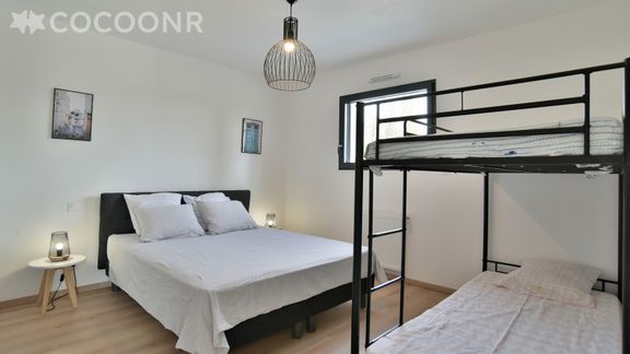 - Chambre 4 : un lit queen-size (160×200) et un lit superposé (2 couchages)