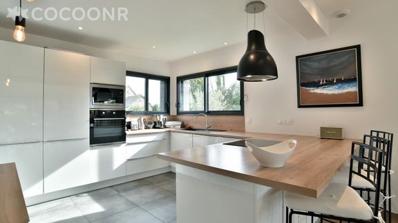 - Une cuisine équipée, avec coin repas avec notamment : bouilloire électrique, four, four à micro-ondes, grille-pain, lave-vaisselle, plaques de cuisson...