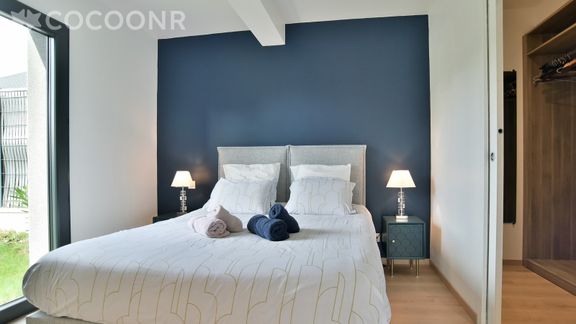 - Suite parentale : un lit queen-size (160×200) avec salle d'eau avec douche et dressing.