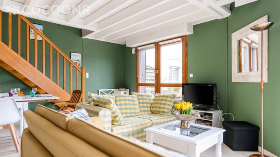 Vous trouverez la pièce à vivre avec un espace salon et une kitchenette tout équipée, une chambre avec une salle de douche privative, wc séparés avec lave-main. A l'étage vous accéderez à une chambre en lit double et une chambre avec deux lits simples ainsi qu'une salle de bain avec wc. Vous disposerez également d'une place de parking privative en extérieur adaptée à tout type de voiture.