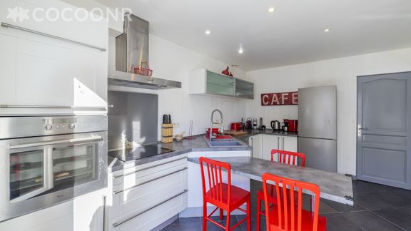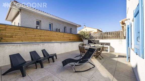 L'Agence Cocoonr/Book&Pay vous propose, à Saint-Nazaire, cette charmante maison climatisée d’une superficie de 120 m². Elle se compose d’une jolie pièce à vivre de 60 m², d'une cuisine équipée, de trois belles chambres, d'une salle de bain et d'un jardin clôturé avec terrasse. Wifi, draps et serviettes inclus.