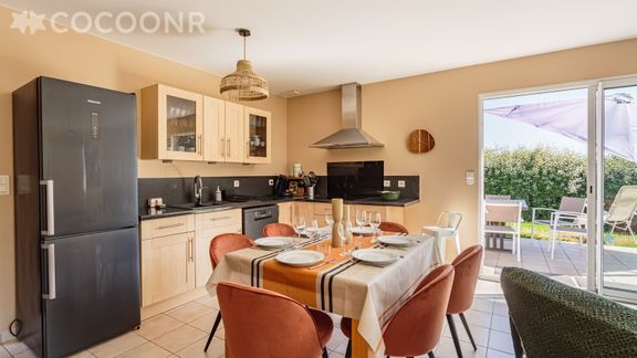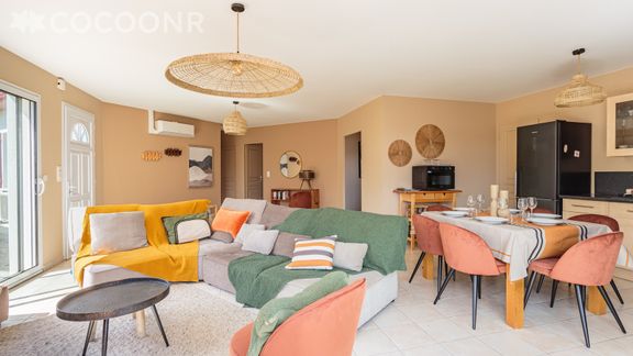 L'agence Cocoonr/Book&Pay vous propose à la location, sur la commune de Saint-Palais, cette charmante maison neuve et climatisée d’une superficie de 93 m² et pouvant accueillir jusqu’à 6 voyageurs. De plain pied, elle se compose d’une jolie pièce à vivre de 35 m², cuisine équipée, de quatre belles chambres, d’une salle d’eau (avec douche italienne) et vous pourrez profiter d’un jardin de plus de 600 m². Wifi inclus, draps et serviettes en option, nous n’attendons plus que vous !