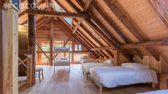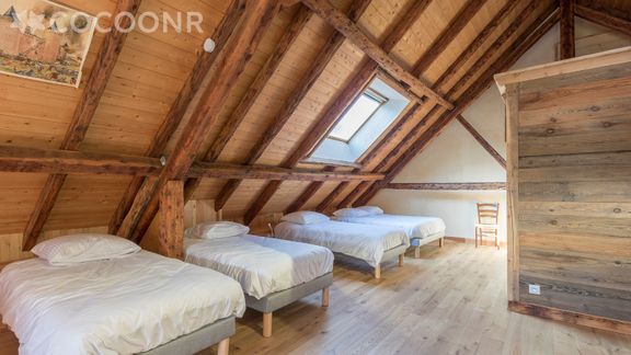 - Un dortoir ouvert avec un lit superposé (2 couchages), 4 lits simples (90x200), un lit double (140x190)