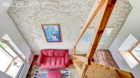 - Une mezzanine : avec un lit double (140×190) et un lit simple