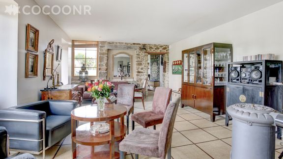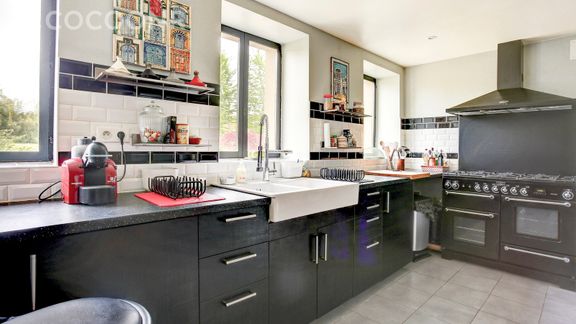 - Une cuisine très bien équipée avec notamment : piano de cuisine avec 6 feux gaz + 2 fours, 3ᵉ four d'appoint, four à micro-ondes, grille-pain, bouilloire électrique...