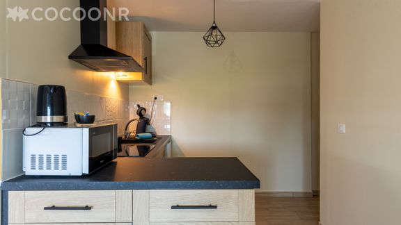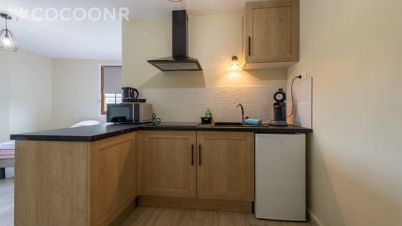 - Une kitchenette équipée avec notamment : bouilloire électrique, four à micro-ondes, plaques de cuisson...
