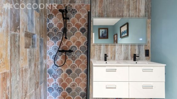 - Une salle d'eau avec douche, partagée pour les deux chambres.