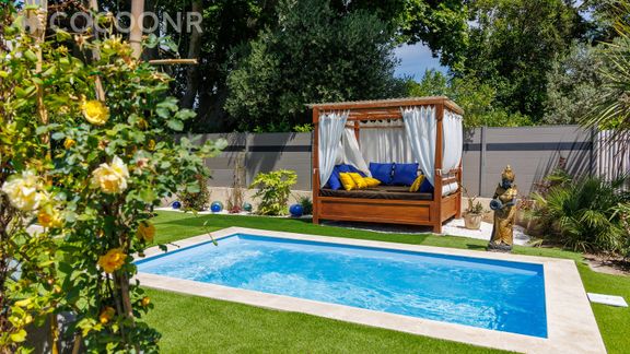 - Une piscine (4,25 x 2,35 et 1,50 m) privée et chauffée, disponible du 1er mai au 30 septembre avec volet sécurisé.
