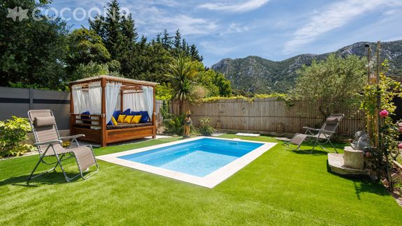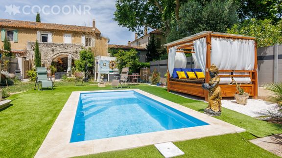 Nous vous proposons à la location, sur la commune de Saint-Rémy-de-Provence, cette charmante maison rénovée, au cœur du massif des Alpilles dans une ancienne propriété vinicole, climatisée, d’une superficie de 250 m² et pouvant accueillir jusqu’à 8 voyageurs. Elle est composée d’une jolie pièce à vivre de 65 m², cuisine équipée, de quatre belles chambres, trois salles de bain (avec douche et baignoire) et vous pourrez profiter d’un jardin. Wifi (fibre optique) inclus. Nous n’attendons plus que vous !