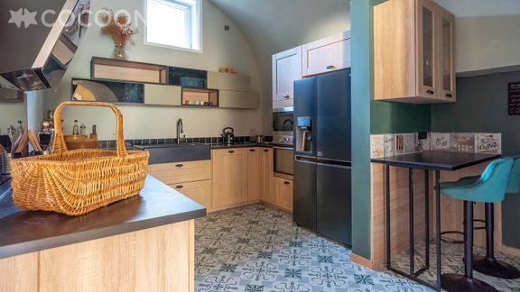 - Une cuisine équipée avec notamment : bouilloire électrique, four, four à micro-ondes, grille-pain, lave-vaisselle, plaques de cuisson, cafetière à dosettes Nespresso...