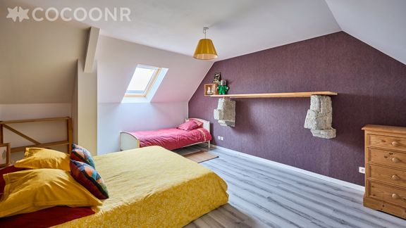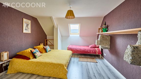 - Chambre 2 : avec un lit queen-size (160×200) et un lit simple