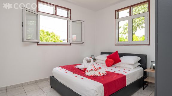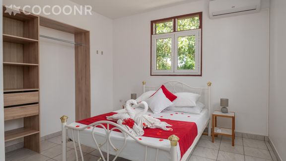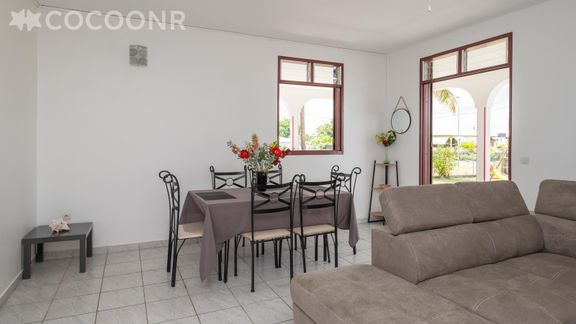 L'agence Cocoonr/Book&Pay vous propose à la location, à Sainte-Anne, cette charmante maison, d’une superficie de 100 m² et pouvant accueillir jusqu’à 9 voyageurs. Elle est composée d’une pièce à vivre de 30 m², d'une cuisine équipée, de trois chambres climatisées, d'une salle d'eau (avec douche) et vous pourrez profiter d’un jardin d’environ 800 m². Wifi, draps et serviettes inclus, nous n’attendons plus que vous !