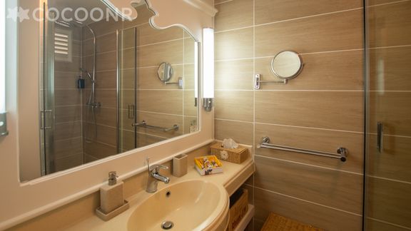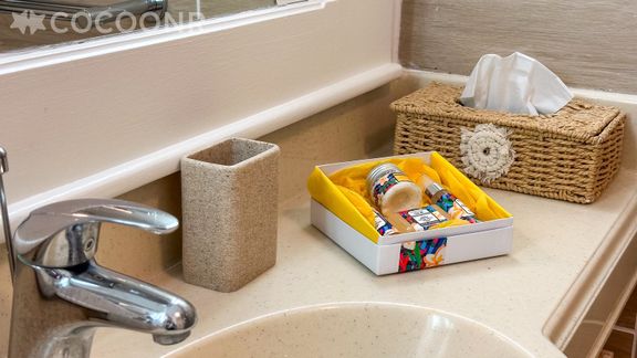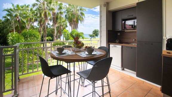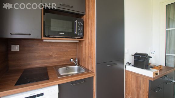 - Une kitchenette équipée avec notamment : bouilloire électrique, four à micro-ondes, grille-pain, lave-vaisselle, plaques de cuisson...