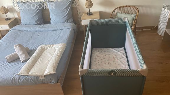 - Un lit parapluie avec matelas bébé, une chaise haute et un matelas à langer sont à votre disposition si besoin
