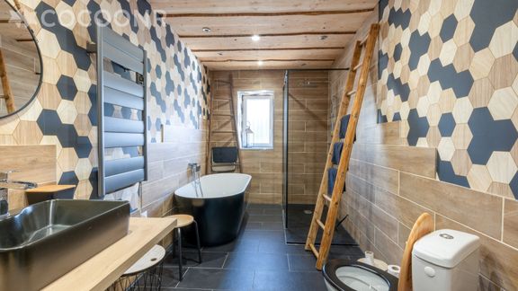 - Chambre 1 : suite parentale avec un lit double (140x190), un dressing et une salle d'eau avec douche à l'italienne et WC