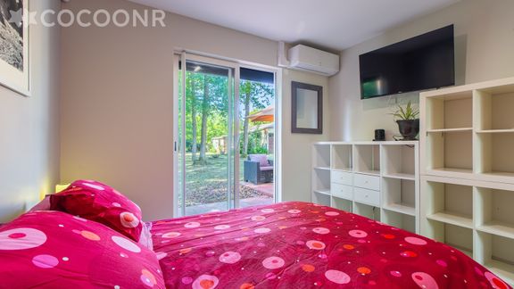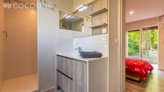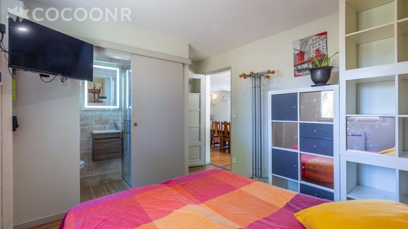 - Chambre 2 : lit queen-size (160x200), TV connectée, salle d'eau privative - avec douche et WC