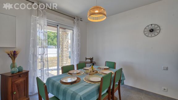 L'agence Cocoonr/Book&Pay vous propose à la location, à Semussac, cette charmante maison d’une superficie de 90 m² et pouvant accueillir jusqu’à 6 voyageurs. Elle est composée d’une pièce à vivre de 20 m², d'une cuisine équipée, de trois chambres, d'une salle d'eau (avec douche) et vous pourrez profiter d’un jardin d’environ 400 m². Draps et serviettes inclus, nous n'attendons plus que vous !