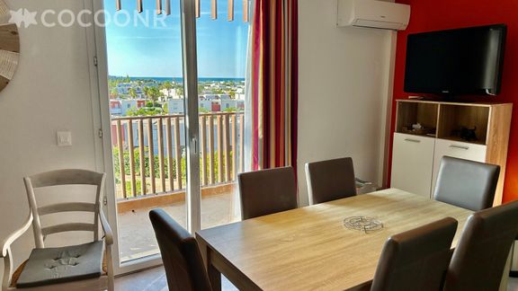 L'agence Cocoonr/Book&Pay vous propose à la location, à Sète, ce charmant appartement entièrement climatisé avec vue mer, à environ 300m de la plage, avec piscine, d’une superficie de 43 m² et pouvant accueillir jusqu’à 6 voyageurs. Situé au 3e et dernier étage (avec ascenseur), il se compose d’une jolie pièce à vivre, d'une kitchenette équipée, de deux chambres et d'une salle de bain. Wifi, draps et serviettes inclus, nous n’attendons plus que vous !