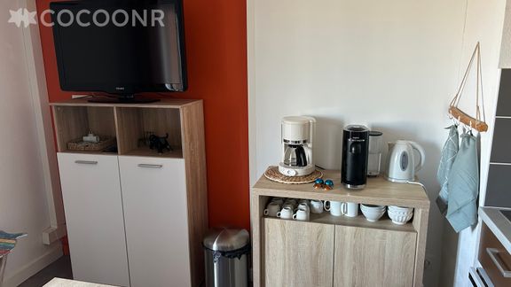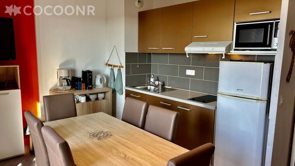 - Une kitchenette équipée avec notamment : bouilloire électrique, four, four à micro-ondes, lave-vaisselle, plaques de cuisson...