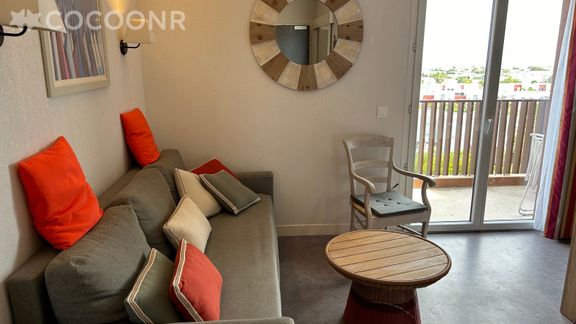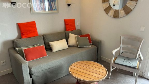 - Une pièce de vie de 18 m² avec canapé-lit double (180x200), coin repas, TV...