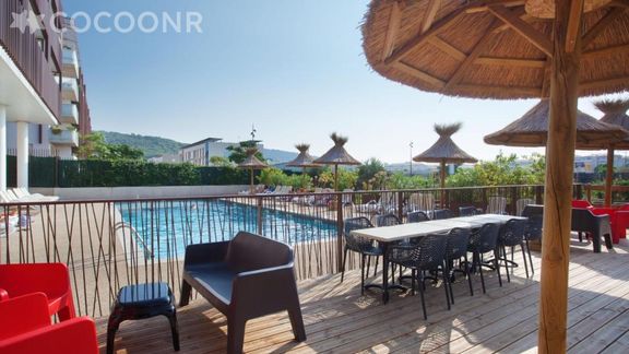 - Une piscine réservée à la résidence (chauffée et ouverte du 1ᵉʳ avril au 30 septembre)