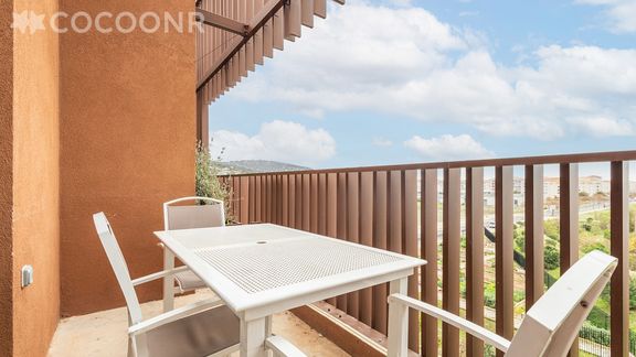 - Un balcon avec table et chaises pour profiter des beaux jours