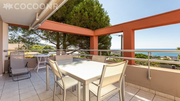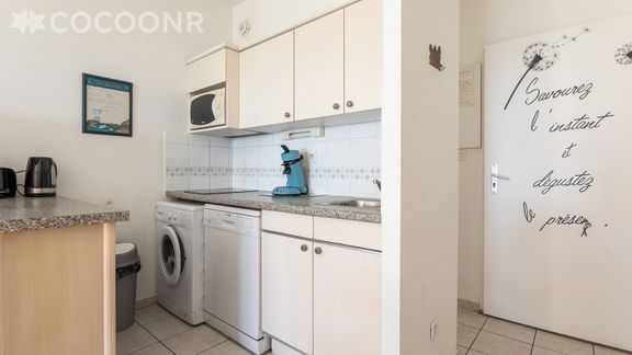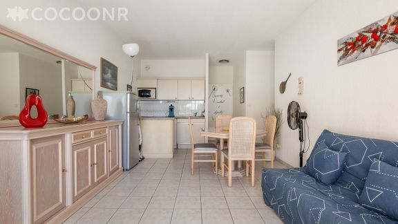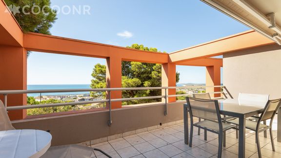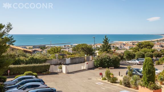 L'agence Cocoonr/Book&Pay vous propose à la location, sur la commune de Sète, ce charmant appartement avec vue mer, à moins d’un kilomètre de la plage, avec piscine partagée, d’une superficie de 42 m² et pouvant accueillir jusqu’à 4 voyageurs. Situé au 1ᵉʳ étage (avec ascenseur), il se compose d’une jolie pièce à vivre de 24 m², kitchenette équipée, de deux chambres, une salle de bain (avec baignoire).