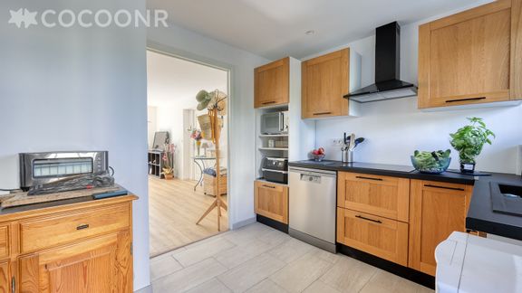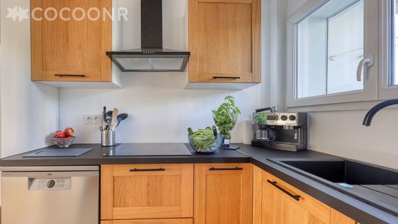 - Une cuisine équipée avec notamment : bouilloire électrique, four, four à micro-ondes, grille-pain, lave-vaisselle, plaques de cuisson...