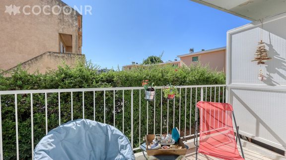 - Balcon 1 : exposé est et d'environ 5 m², attenant à la pièce de vie et avec mobilier pour profiter des beaux jours