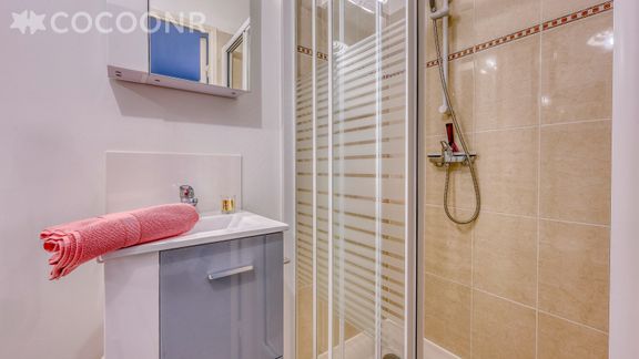 - Chambre 1 : un lit double (140x190) avec salle d'eau (douche) attenante, WC