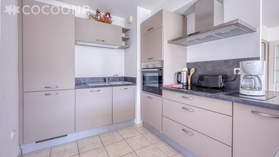 - Une cuisine équipée avec notamment : bouilloire électrique, four, four à micro-ondes, grille-pain, lave-vaisselle, plaques de cuisson...