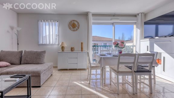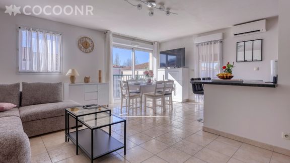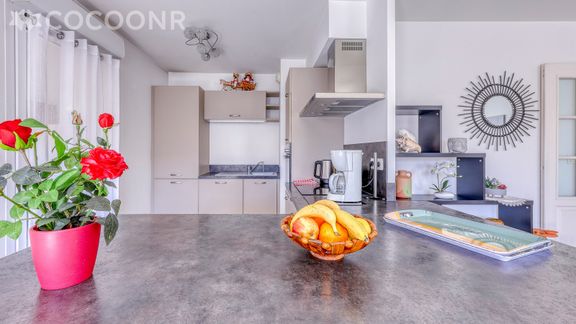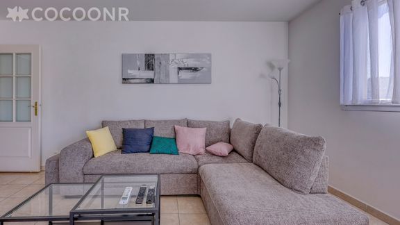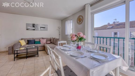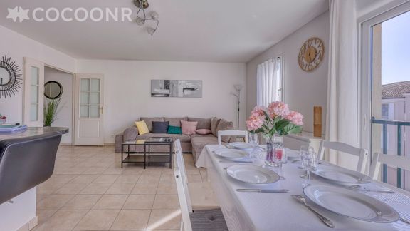 L'agence Cocoonr/Book&Pay vous propose à la location, à Six-Fours-les-Plages, cet appartement climatisé à moins d’un kilomètre de la plage, d’une superficie de 80 m² et pouvant accueillir jusqu’à 6 voyageurs. Situé au 2ᵉ et dernier étage (avec ascenseur), il se compose d’une pièce à vivre de 33 m², d'une terrasse couverte de 18m², d'une cuisine ouverte équipée, de trois belles chambres et de deux salles de bain (avec douche et baignoire). Wifi (fibre optique), draps et serviettes inclus, nous n’attendons plus que vous !